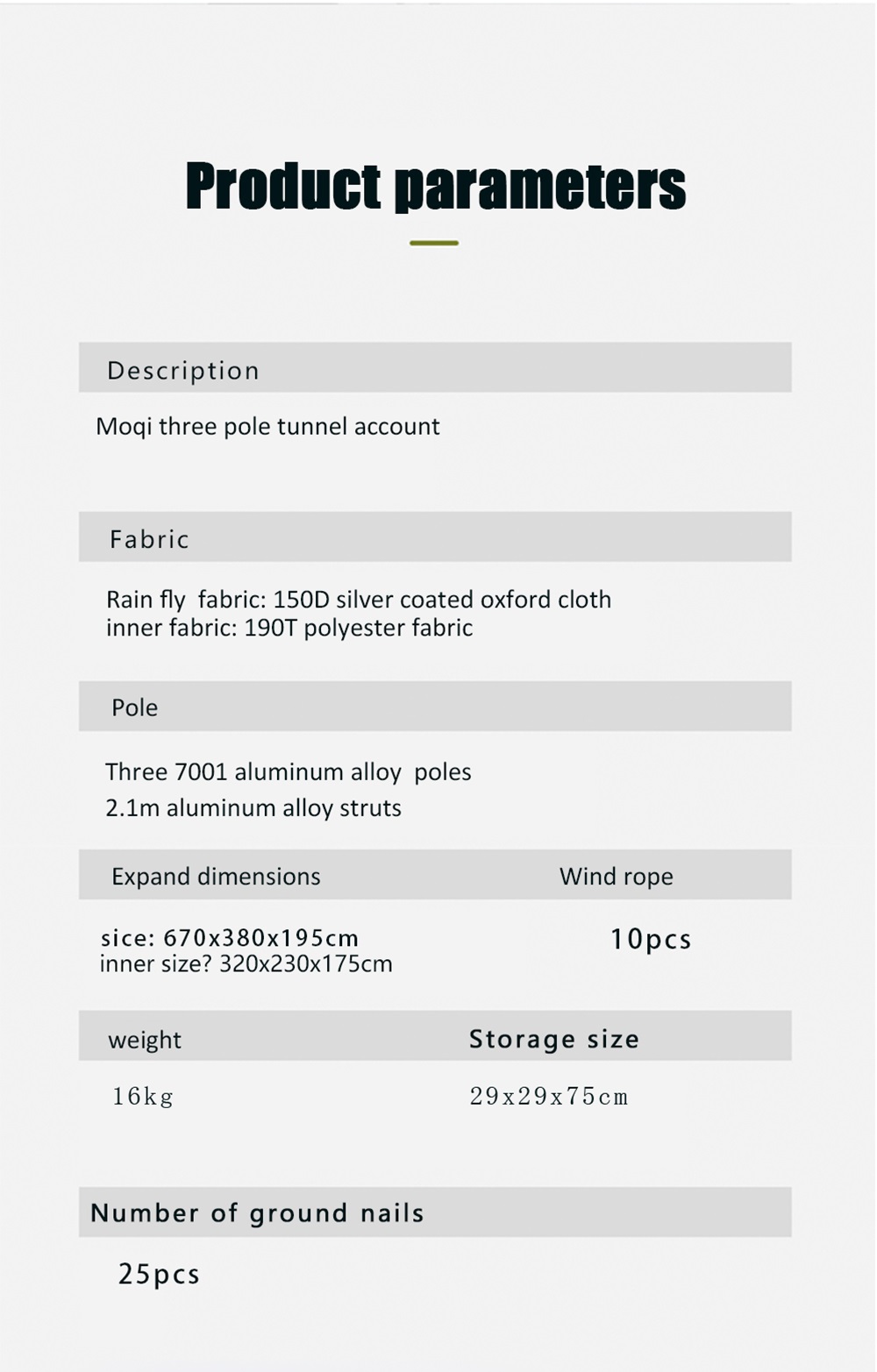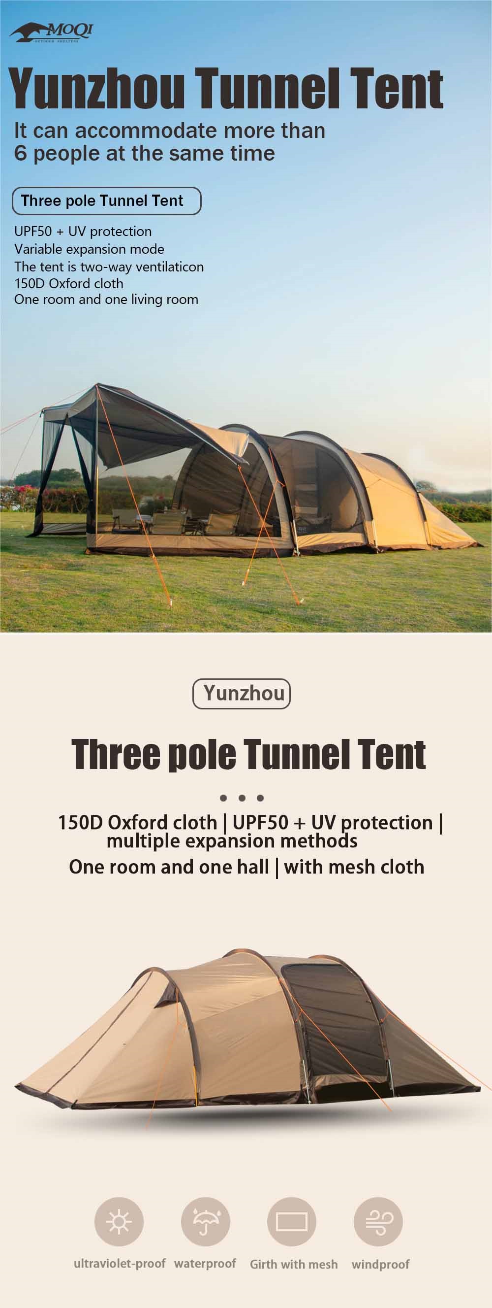 Outdoor Camping Tunnel Tent MOQI Manufacturers Four Pole Tunnel Tent Luxury Glamping Tent Outdoor Camping Tunnel Tent for Family More