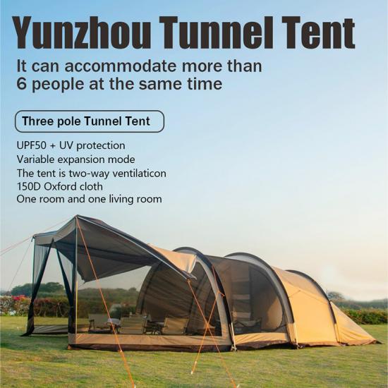 6-8 Person Waterproof Camping Tent 150D Oxford Cloth Family House Outdoor Tent Camp Large Three Pole Tunnel Tent for Travel