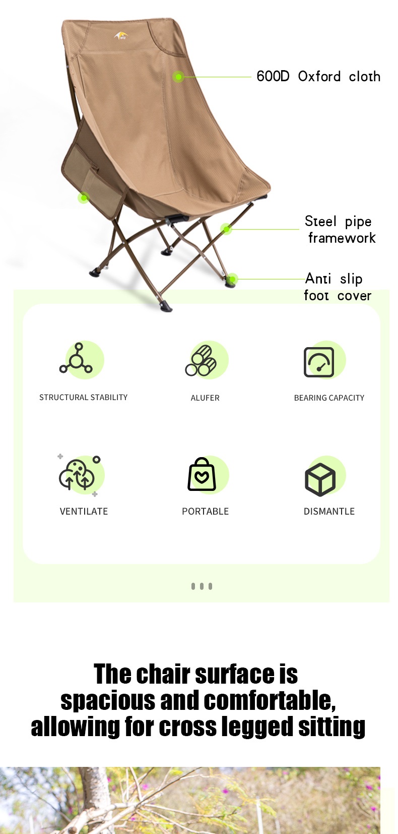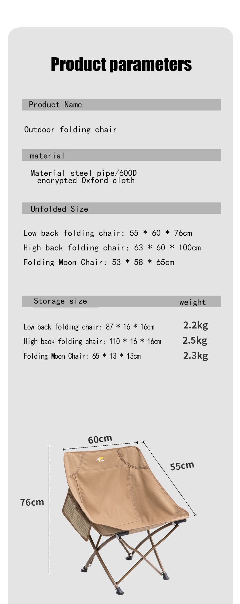 High Quality Beach Camping Chairs Folding Portable 600D Oxford Cloth Outdoor Table Chair Foldable Fishing Moon Chair Camping