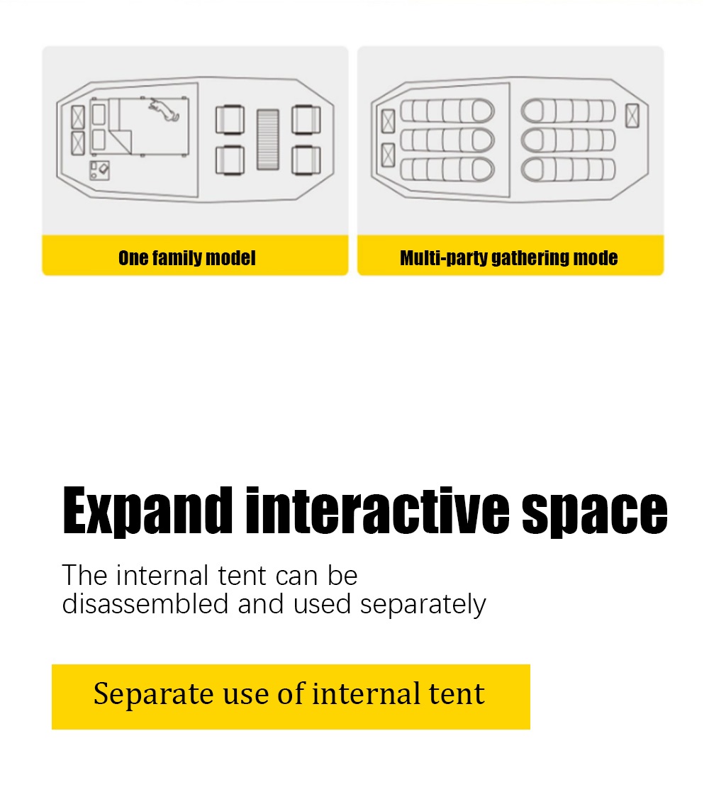 Family Automatic Tunnel Tent MOQI Factory Pop up Tent Camping Outdoor One Bedroom & One Living Room Super Large Family Automatic Tunnel Tent More