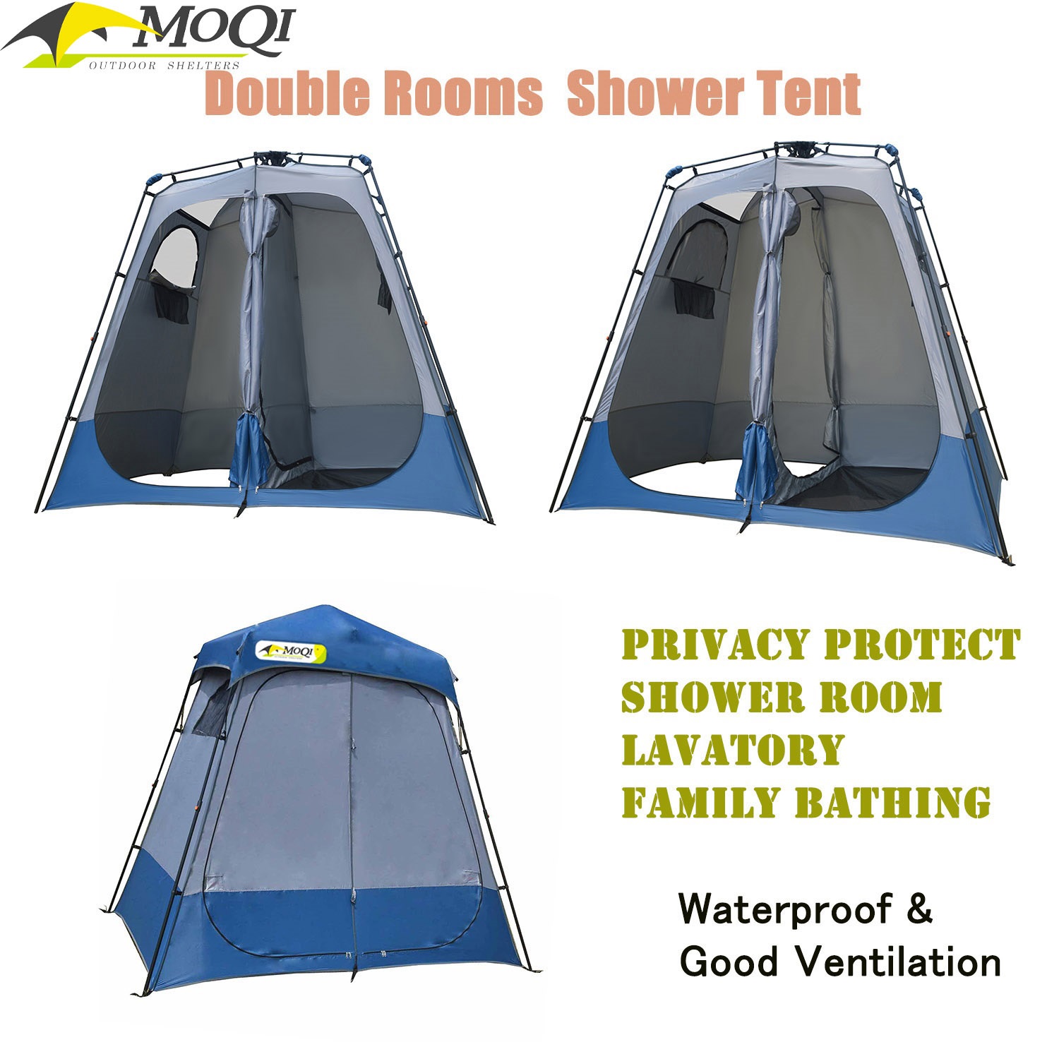 MOQI Wholesale Folding Pop Up Privacy Tent Outdoor Double Shower Tent Waterproof Beach Camping Toilet Foldable Changing Tent