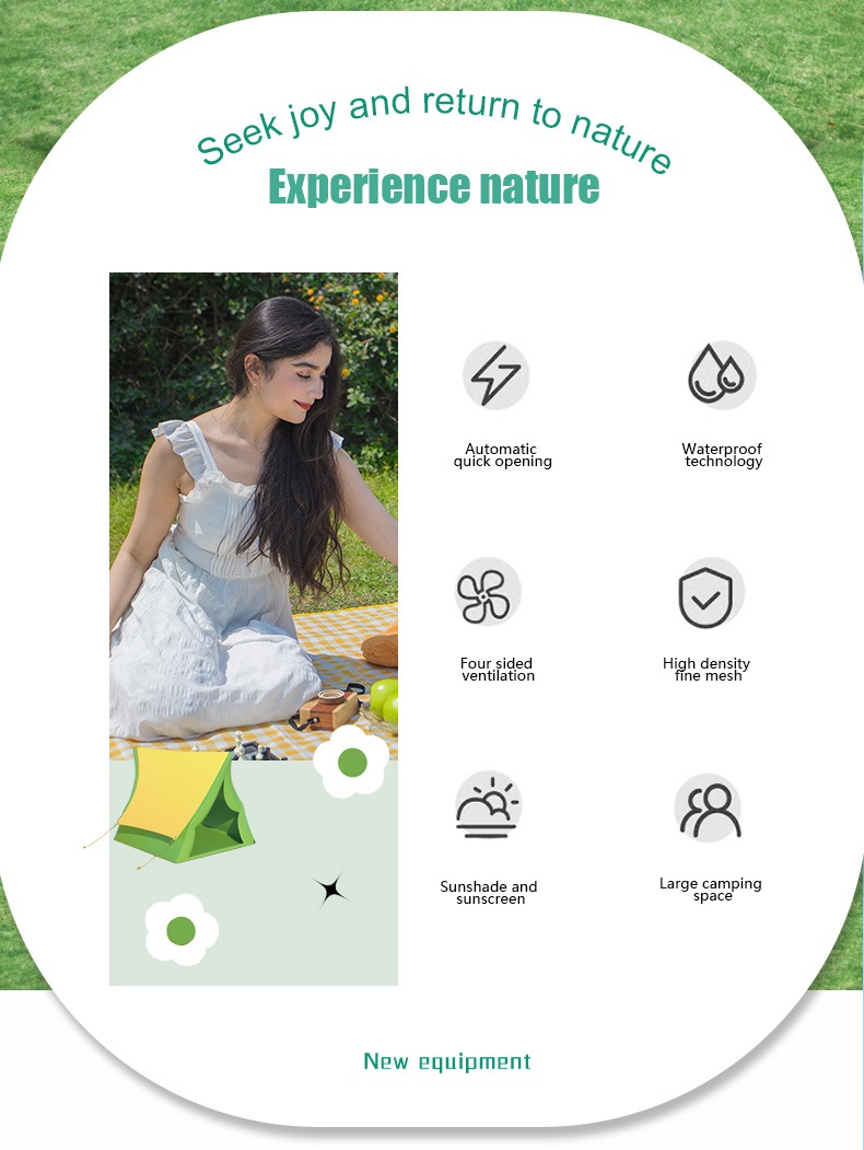 Family Automatic Tunnel Tent MOQI Factory Pop up Tent Camping Outdoor One Bedroom & One Living Room Super Large Family Automatic Tunnel Tent More